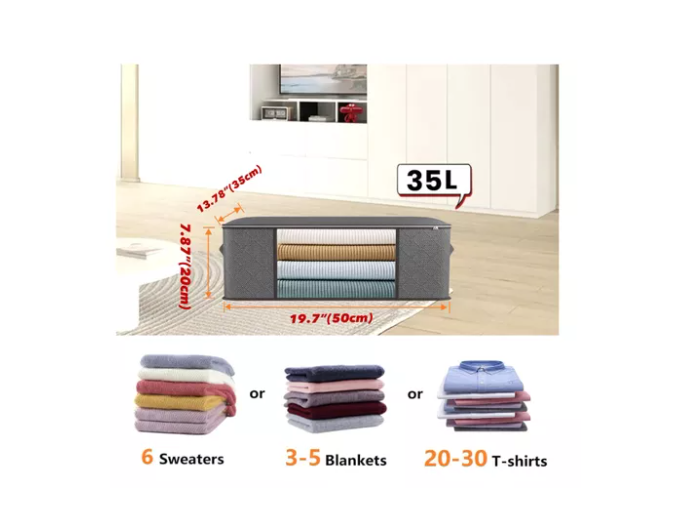 Cada bolsa tiene una capacidad de 35 litros, perfecta para almacenar hasta 6 suéteres, 3 a 5 mantas o entre 20 y 30 camisetas, según tus necesidades.