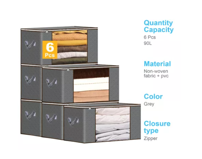 Con este pack de 6 bolsas de almacenamiento de gran capacidad, podrás mantener tu hogar ordenado y tus pertenencias protegidas, aprovechando al máximo el espacio disponible. Son la solución perfecta para cualquier persona que busque una forma práctica y eficiente de organizar su ropa y textiles del hogar.