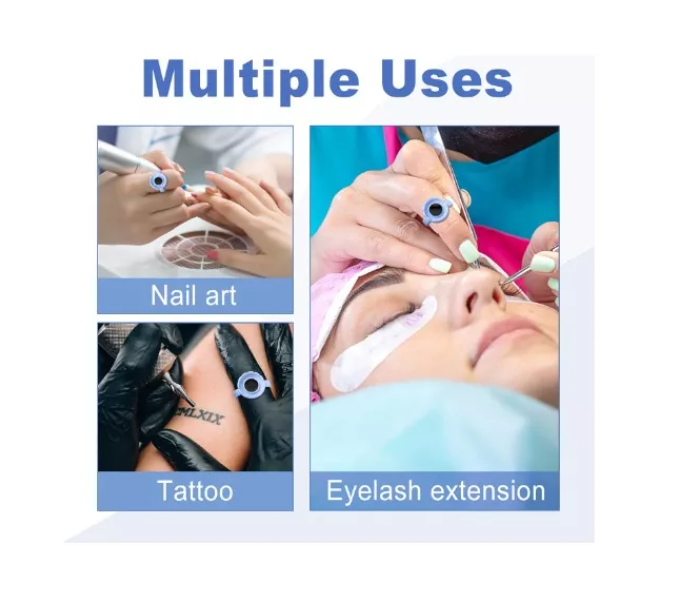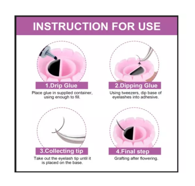 Fácil de usar: Use el anillo inteligente en su dedo con el resto del dedo hacia arriba, deje caer el pegamento en el reposamuñecas, use un clip para quitar las pestañas y tome el pegamento dentro del reposa-dedos, y luego obtendrá pestañas perfectas en forma de abanico.