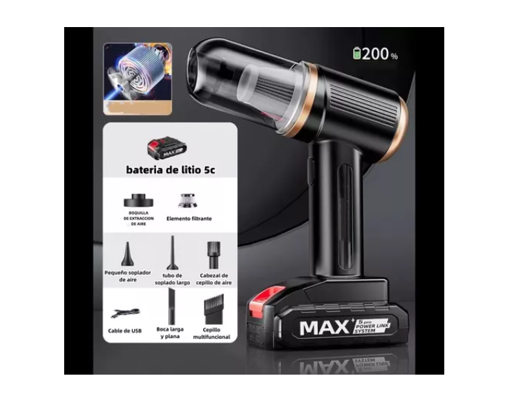 La potente aspiradora portátil de succión para automóvil utiliza un motor avanzado con una velocidad máxima de 50,000 RPM. Batería incorporada de 6000 mAh con placa protectora para garantizar una carga y un uso seguros. Cuando esté completamente cargada, la luz indicadora se volverá verde y podrá funcionar de forma continua durante 30 minutos. Viene con cable de carga tipo C. La potente potencia de succión de la aspiradora de 9000 Pa puede eliminar partículas tan pequeñas como 0,3 micras de sofás y colchones, sin dejar polvo donde esconderse.