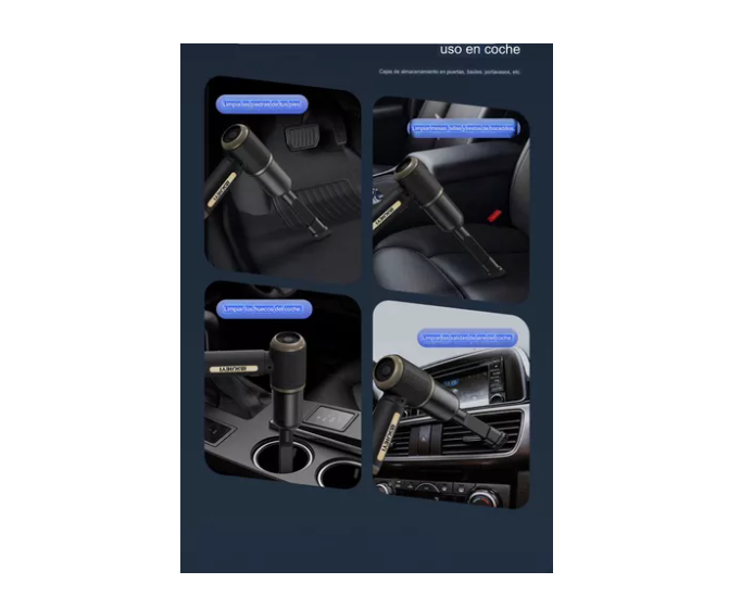 La boquilla múltiple y herramienta para rincones de limpieza fina llega a áreas difíciles de alcanzar, como entre los cojines del sofá, y se utiliza para aspirar espacios estrechos e irregulares en muebles, tapicería de automóviles, bordes pequeños y más. Esta aspiradora portátil para automóvil también viene con una variedad de accesorios de boquilla de cepillo desmontables, perfectos para ayudarlo a limpiar profundamente su automóvil, computadora, cámara, dispositivo electrónico, aire acondicionado, sofá, ventanas, mascotas, plantas, etc., o inflar.