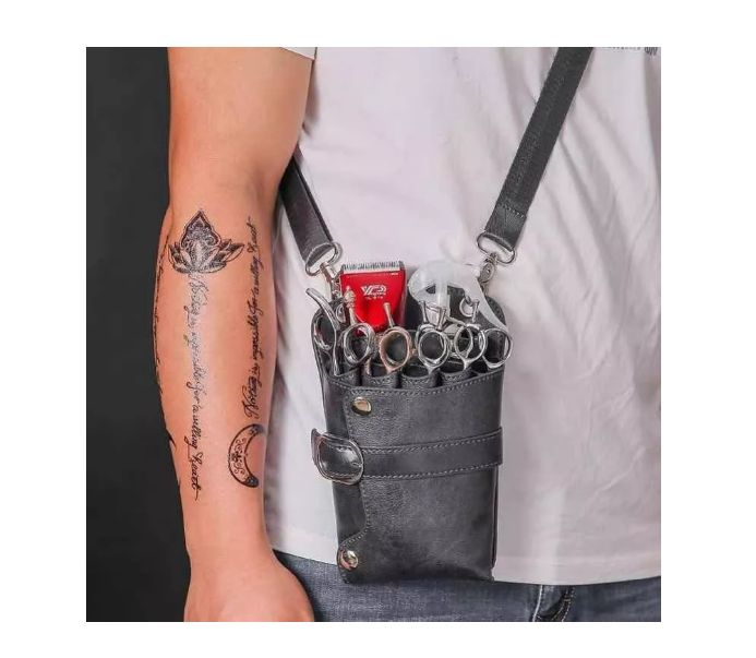 Descripción: 8 bolsillos para tijeras y 1 bolsillo principal (para peines, pinzas de peluquería y Navajas, etc); permite guardar 7 piezas de tijeras y otros útiles de peluquería y Barbería . Cinturón desmontable con clip, se ajusta cómodamente a la cintura. Bolsa de tijeras duradera, ayuda a mantener tus herramientas más importantes a tu lado.