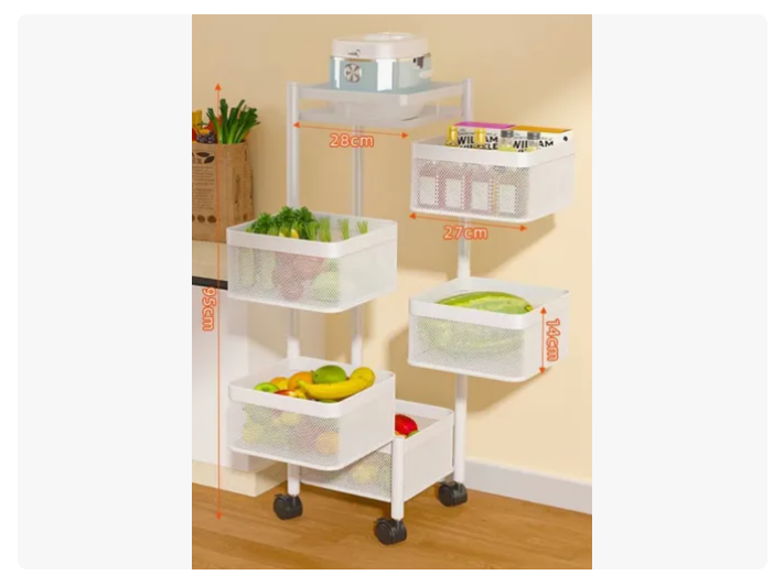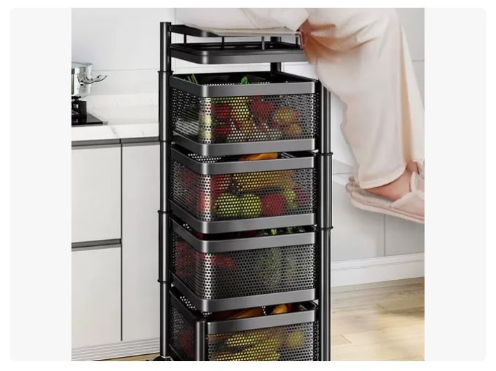 Este organizador no solo es práctico, sino que también contribuye a mantener tus alimentos frescos y ordenados, evitando el desorden en tu cocina. Su diseño de cinco niveles maximiza el espacio vertical, ideal para cocinas pequeñas o para quienes buscan una solución de almacenamiento eficiente.
