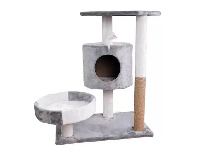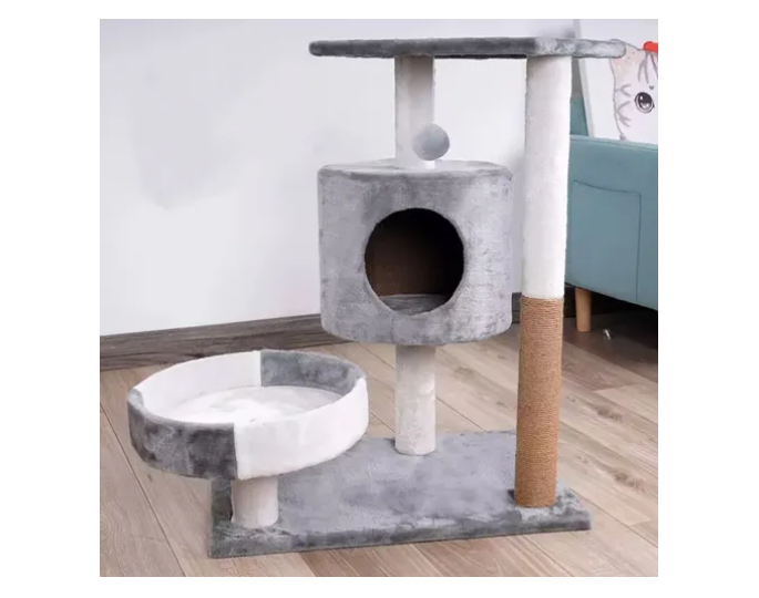 Sumérgete en el mundo de la diversión y el confort felino con nuestro encantador Rascador de Gatos 2 Niveles + Casita