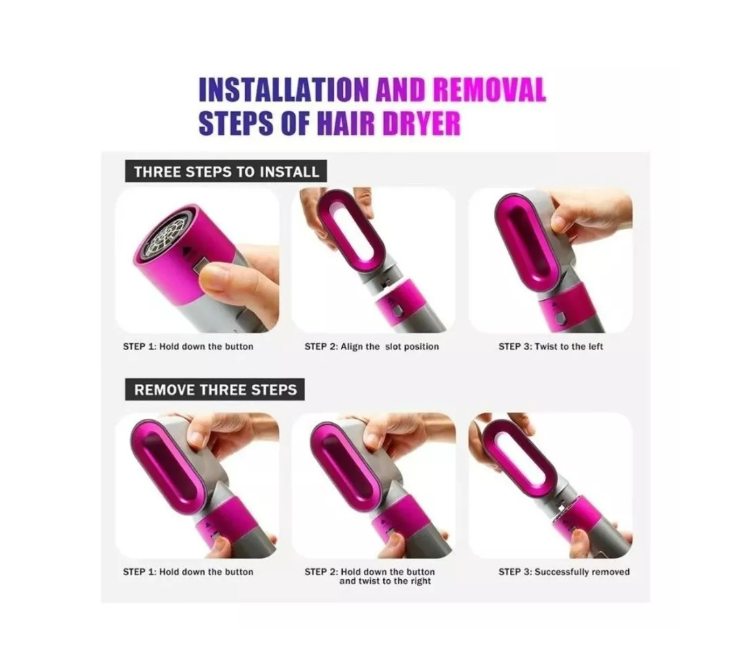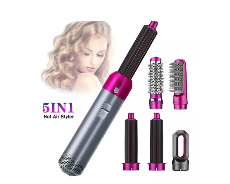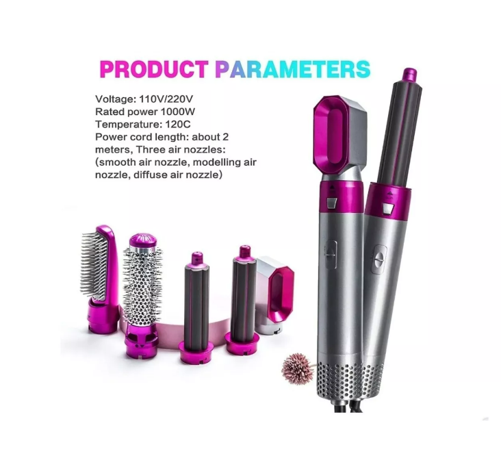 Peine cepillo de aire eléctrico multifuncional cinco en uno reemplazable 5 formas diferentes de instalación de enchufe de cabezal de carga de aire caliente que fluye en seco y húmedo doble uso fácil de construir diferentes estilos de cabello.