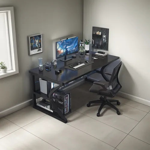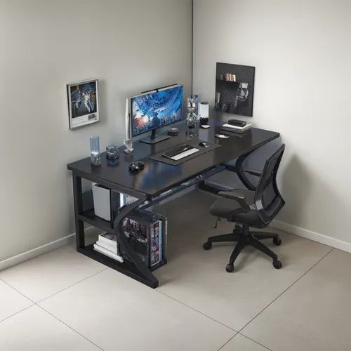 Equipada con un estante inferior de almacenamiento, perfecto para guardar libros, discos duros, routers, decoraciones o papelería, ayudando a mantener el área de trabajo limpia y ordenada.
