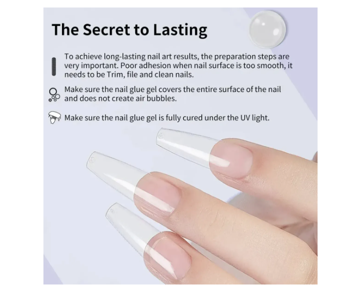 CHERIMOYA Pegamento Para Uñas Súper Fuerte Con Pincel, 10ml El paquete incluye: 1 Nail Glue 10ml Pegamento profesional para uñas acrílicas y tips, con pincel integrado que facilita una aplicación precisa y controlada. Ideal para lograr una fijación segura y duradera en trabajos de manicura. Características principales: Adhesión fuerte y de larga duración Formulado especialmente para fijar tips o uñas artificiales con seguridad, proporcionando una sujeción resistente que ayuda a mantener las extensiones bien adheridas durante más tiempo, incluso en el uso diario. Tecnología Quick Glue de secado rápido Este pegamento está formulado para secar en aproximadamente 5 segundos, permitiendo una fijación casi inmediata del tip. Ayuda a reducir el tiempo de trabajo y agiliza el proceso de extensión de uñas. Secado al aire, no requiere lámpara UV/LED El pegamento se fija de manera natural sin necesidad de secado bajo lámpara, lo que simplifica el proceso de aplicación, reduce el tiempo de trabajo y lo hace más cómodo para quienes no cuentan con equipo profesional. Textura fluida de fácil manejo Su consistencia fluida permite una distribución homogénea del pegamento, favoreciendo una correcta adhesión del tip a la uña natural y ayudando a minimizar la formación de burbujas de aire. Versátil para distintas técnicas de manicura Adecuado para la colocación de uñas postizas, tips acrílicos y reparaciones, siendo una herramienta útil tanto para manicuras profesionales como para quienes realizan extensiones en casa. Modo de uso: 1. Preparar la uña natural limando y dando forma. 2.Pulir suavemente para retirar brillo y residuos de grasa. 3.Aplicar una capa de pegamento con el pincel sobre la uña preparada. 4.Colocar el tip y presionar suavemente durante 5 segundos hasta que quede fijo. 5.Verificar que no queden burbujas de aire y dejar fijar completamente.