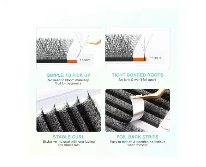 - Aspecto único: el juego especial de volumen de base de pestañas finas con 3 puntas hace que la extensión se vea más elegante y esponjosa, y las pestañas son bastante suaves.