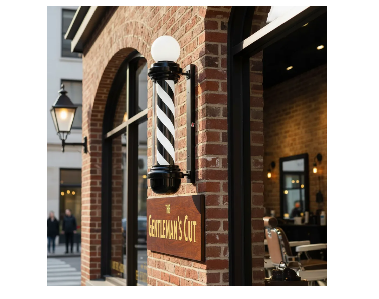 Poste o señal de letrero luminoso para Barbería. Es giratorio y posee luz. Modelo elegante Tamaño: 100cm x 26cm Material Plástico, Acrilonitrilo butadieno estireno Acerca de este producto * Tamaño: Altura: 100cm, diámetro inferior es 26 cm * Material: base de montaje en pared chapada en oro de acero inoxidable, pantalla de plástico para PC, tapa y extremo de varilla cromados en ABS. * Características: control de cable, giratorio, resistente al agua IP68, ahorro de energía 12W.