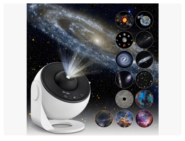 12 Discos de Proyección Intercambiables: Disfruta de diferentes imágenes del universo, incluyendo galaxias, planetas, la Vía Láctea y nebulosas.