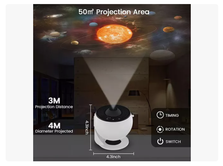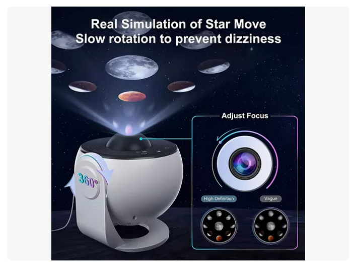 Convierte cualquier habitación en un espectáculo cósmico con este proyector de galaxia LED. Diseñado para los amantes del espacio, este dispositivo crea una atmósfera envolvente con imágenes realistas de nebulosas, planetas y estrellas. Perfecto para relajarse, dormir, decorar habitaciones o incluso para fines educativos.