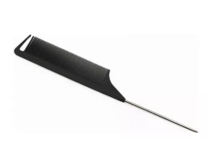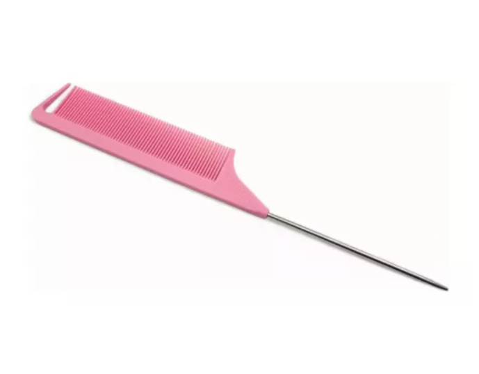 El otro extremo tiene un diseño de cola de rata de metal, ideal para seccionar el cabello con precisión, especialmente en estilos de peinado complejos.