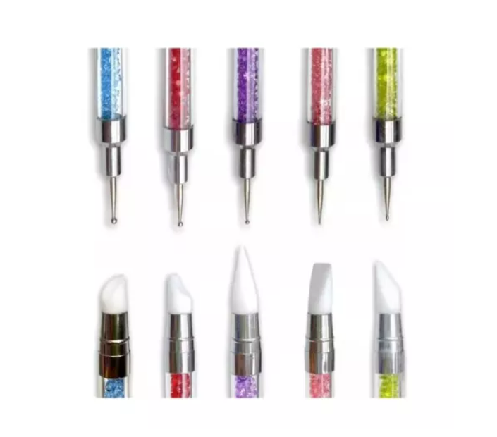 Set 5 Puntero Dobles Con Punta De Goma Para Manicure De Uñas