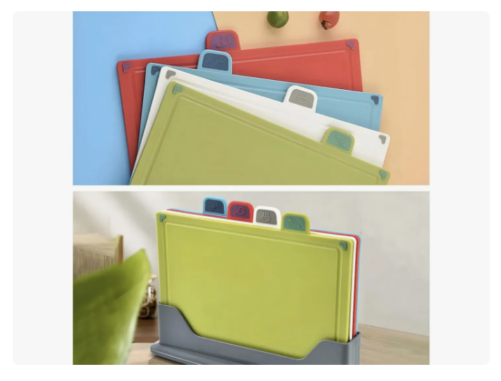 Material seguro de calidad alimentaria, duradero: —— Tablero de polipropileno (PP), sin pigmento, insípido, puede estar en contacto directo con alimentos, saludable, resistente a la corrosión, alta dureza. Los utensilios de cocina son moderadamente blandos y duros, no se deforman y son resistentes a altas temperaturas. "