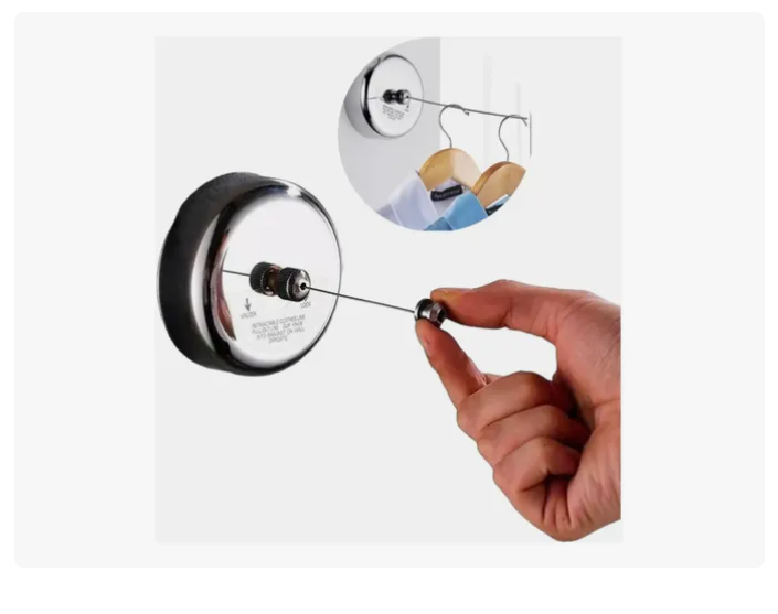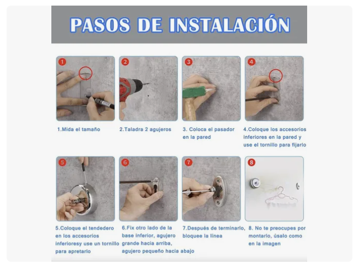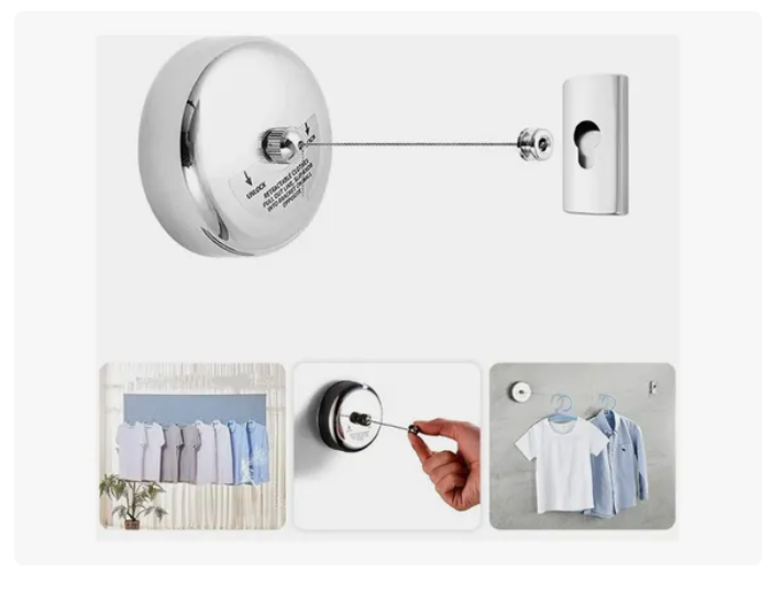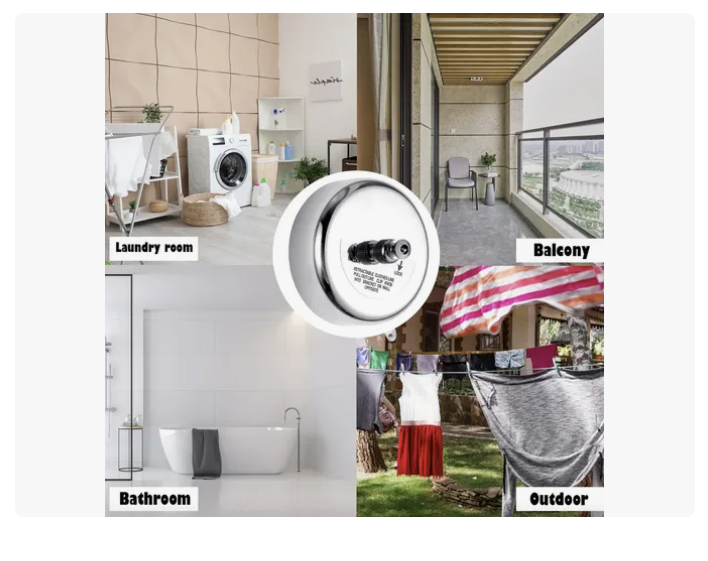 Líneas de Ropa RetráctilesLa línea de lavado retráctil es de fijación con tornillos puede ajustar la longitud girando el tornillo A diferencia de los postes de tela cuando necesite secar la ropa puede colgar la cuerda en la placa de fijación y encogerla cuando no esté en uso para ahorrar espacio