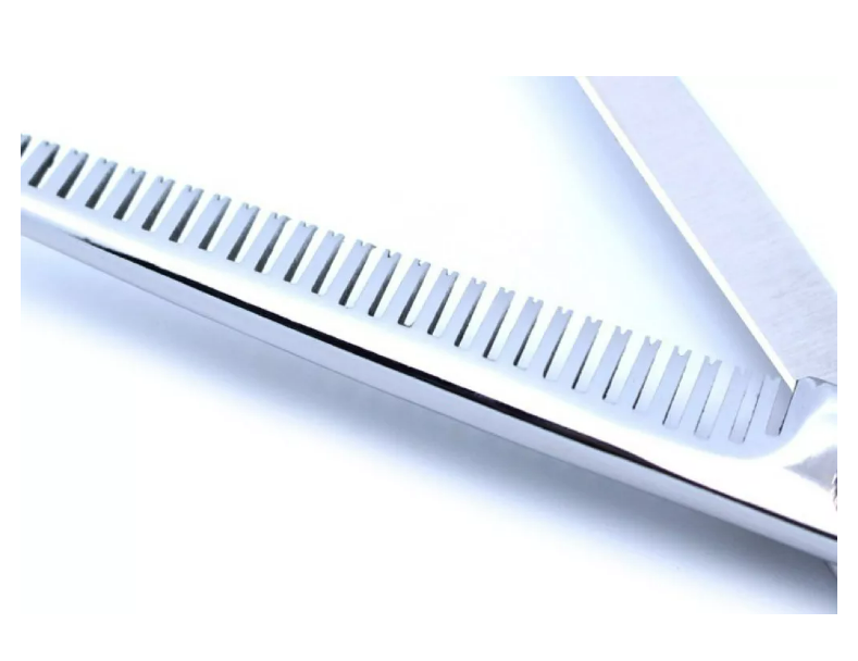 Tijera entresacadora profesional , que gracias a su característica ajustable permite dar adaptación en su uso, permitiendo realizar un trabajo de terminaciones profesionales.