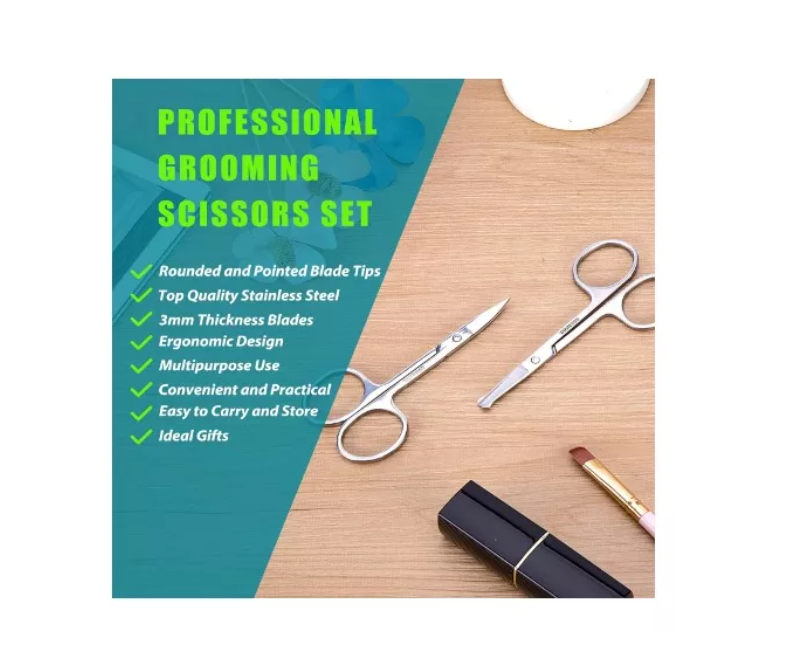 Máxima calidad: hecho de acero inoxidable de alta calidad. Las tijeras son duraderas y fáciles de limpiar. Adecuadas para viajes, baño, negocios, fiesta, hogar, peluquería, cirugía.