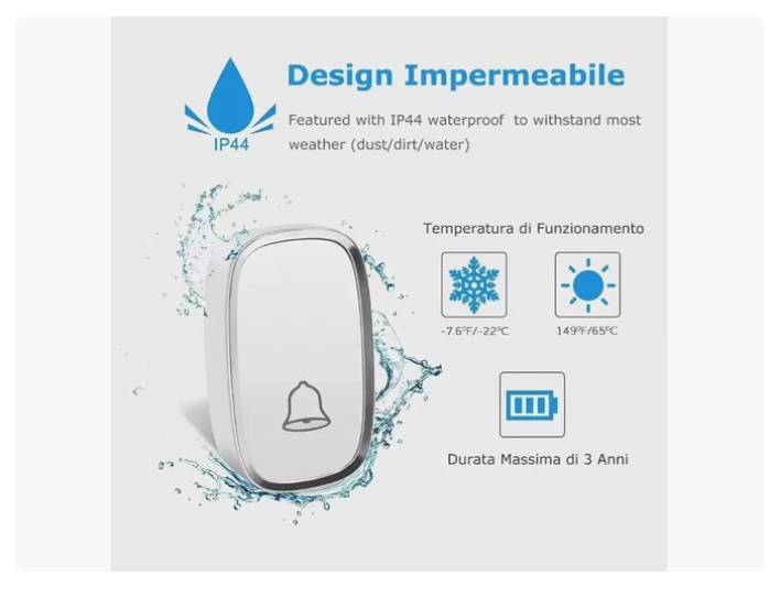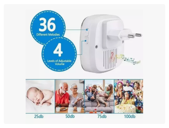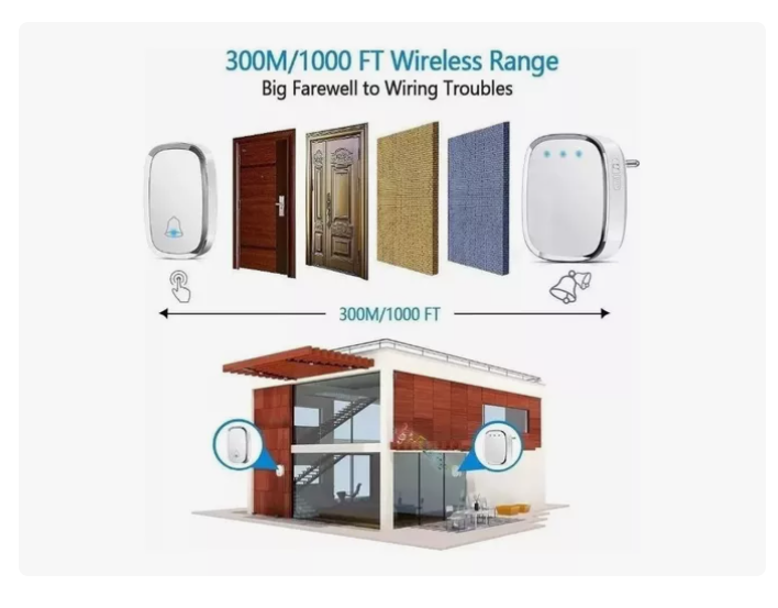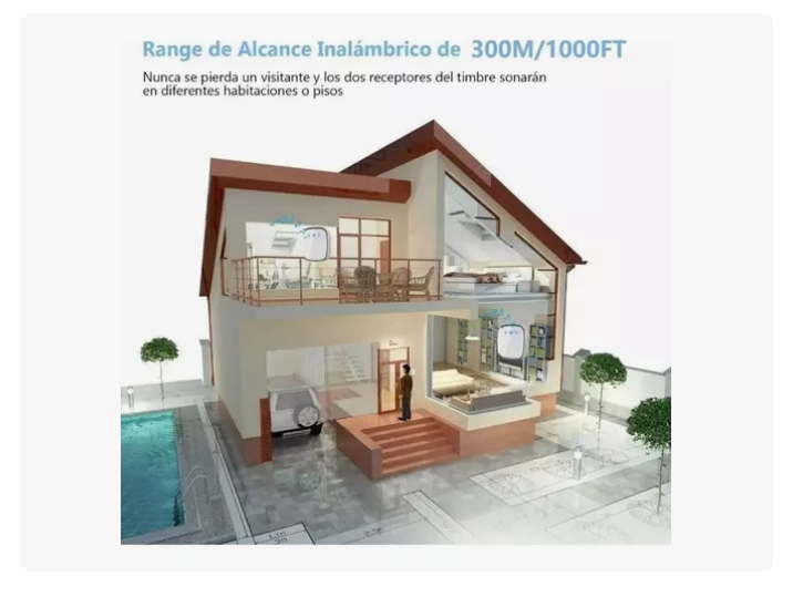 Con una distancia de cobertura de 300 m, instala tu timbre donde más te convenga. Tanto la unidad receptora como el pulsador funcionarán a la perfección.