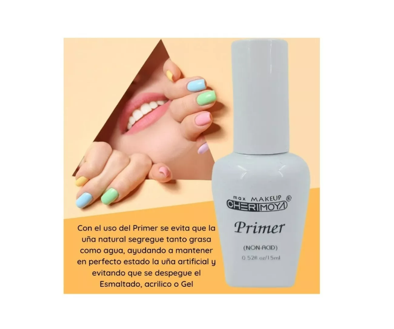Primer sin acido 15ml: Es un Antihongos que ayuda a que se adhiera mejor la base del esmaltado.