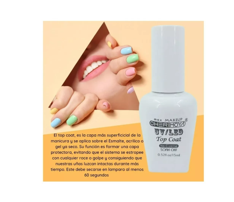 Top Coat / Base Coat / Primer Cherimoya 15ml ( 3 Selecciones )