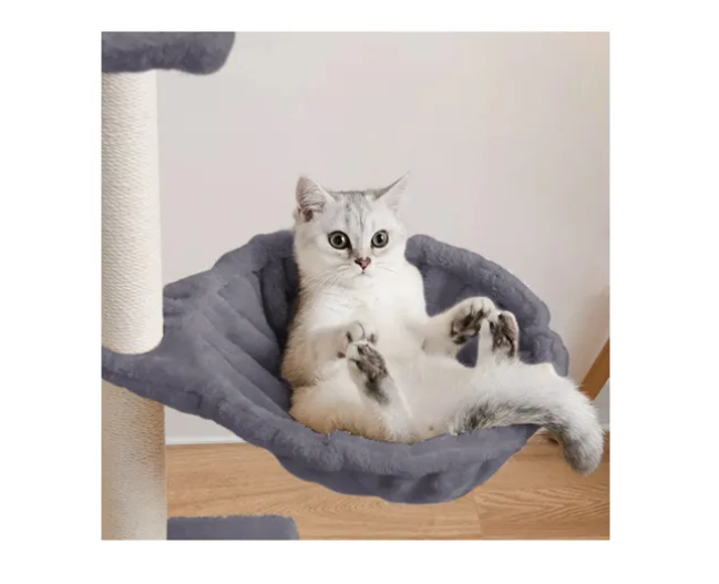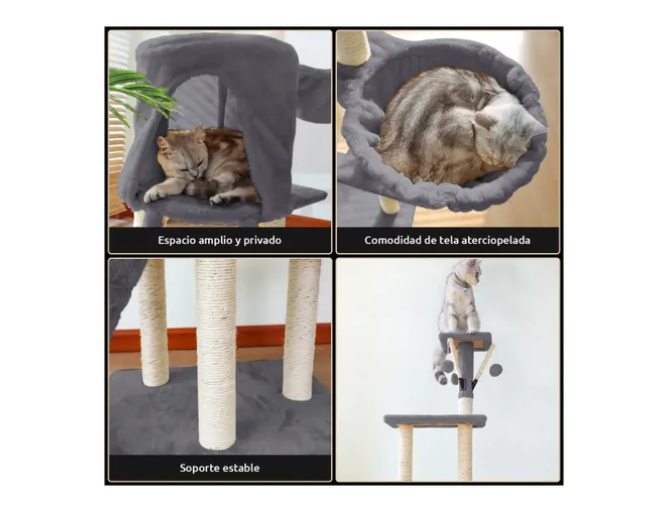 4. Plataforma de salto: la plataforma de salto incluida en este árbol para gatos proporciona una superficie duradera y atractiva para que sus gatos rasquen, se estiren y salten, satisfaciendo sus instintos naturales.