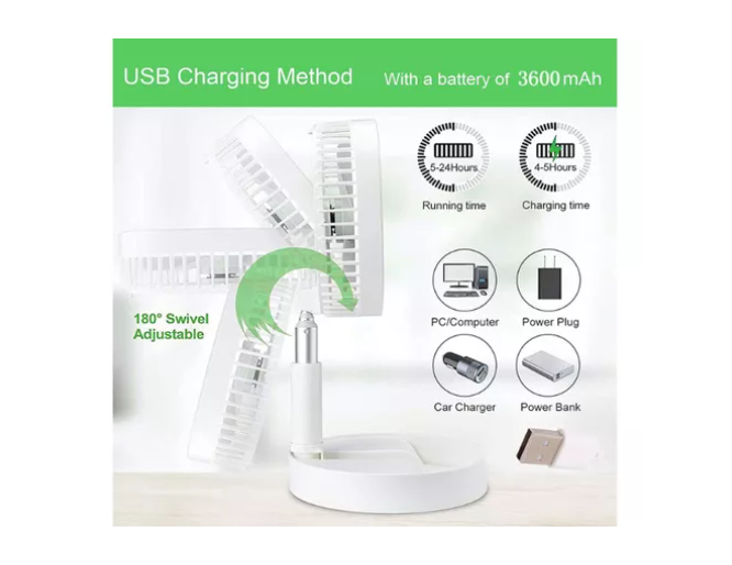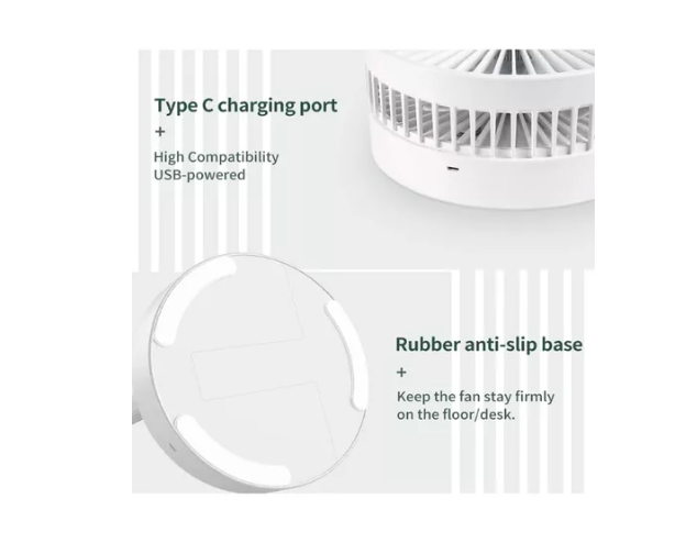 El ventilador utiliza tecnología avanzada de reducción de ruido, funcionando casi en completo silencio, lo que lo hace ideal para entornos donde se requiere tranquilidad, como oficinas, dormitorios o habitaciones de bebés. Su potente motor, junto con las aspas diseñadas para optimizar el flujo de aire, garantiza una brisa potente y al mismo tiempo silenciosa. Ya sea que lo utilices en casa para disfrutar de una comodidad silenciosa o durante actividades al aire libre en busca de frescura, este ventilador ofrece un rendimiento confiable y una experiencia portátil incomparable.